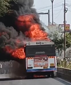 धुआं निकलने के साथ ही आग की लपटें चलती बस से उठती दिख्राई दीं। आग की लपटों से बस को दौड़ते देखकट राहणीरो व सवारियों में अफरा तफरी मच गई और ड्राइवर ने तुरंत बस को सडक किनारे रोक दिया ।बस में सवार सभी सवारियों को जैसे-तैसे बाहर निकाला गया। देखते ही देखते आग ने विकराल रूप धारण कर लिया और पूरी बस को अपनी चपेट में ले लिया। शार्ट सर्किट से लगीआग वायर से होते हुए इंजन तक पहुंच गई रोडवेज बस मेंआग लगने की सूचना पर फायर स्टेशन से 2 दमकल गाड़ियां ने मौके पर पंहुच कर आधे घंटे तक कड़ी मशक्कत कर आग पर काबू पाया l आग से रोडवेज बस जलकर पूरी तरह से कबाड़ में बदल गई़ हैं ।हादसे में किसी व्यक्ति के झ्लुलसने या घायल नहीं होने की जानकारी मिली हैं l