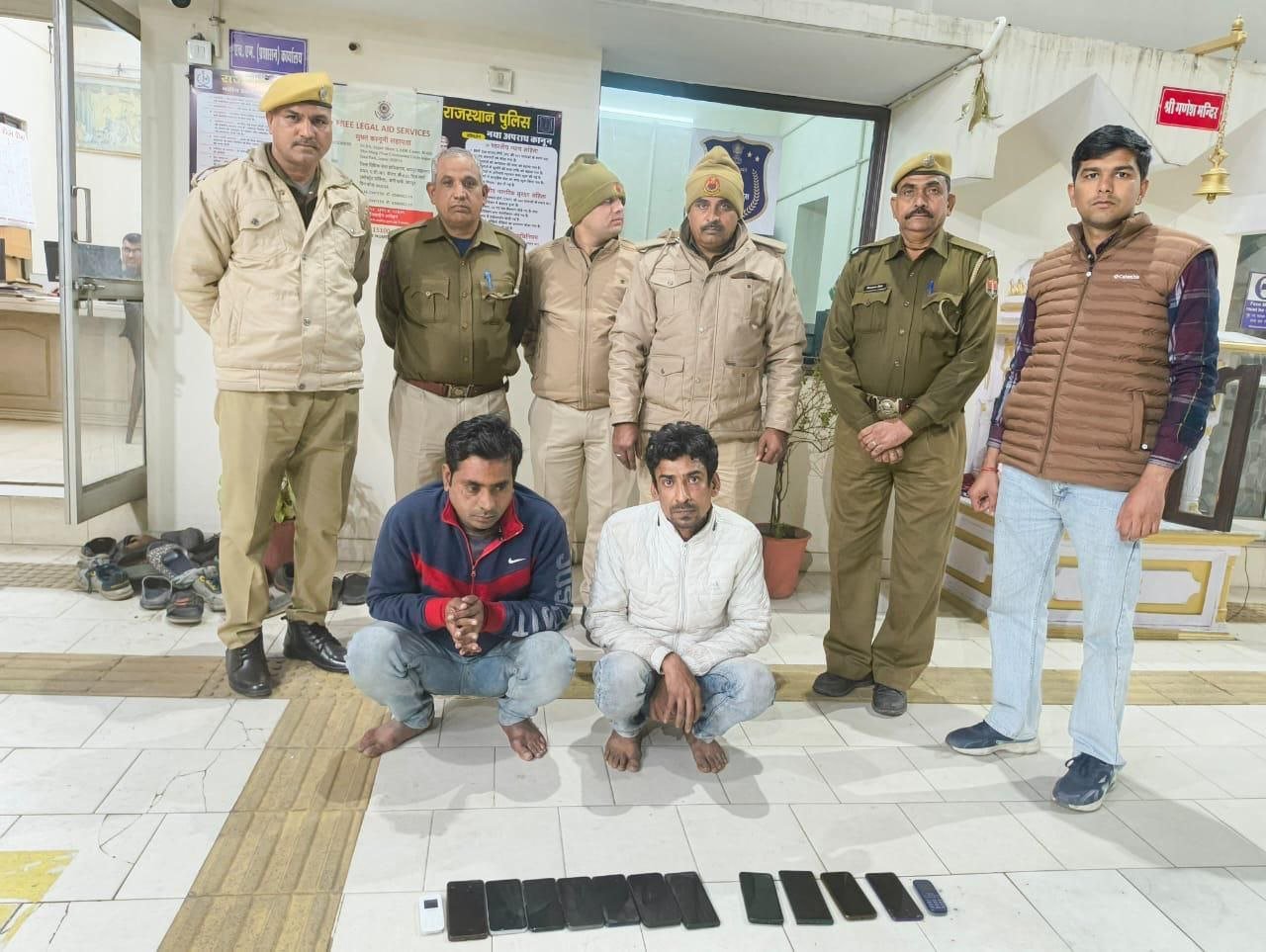 जयपुर के विधायकपुरी थाना पुलिस की बड़ी कार्रवाई,वाहन चालकों का ध्यान भटकाकर वाहनों से महंगे मोबाइल पर्स चुराने वाली मेरठ उत्तर प्रदेश की गैंग के विरुद्ध कार्रवाई की ,मेरठ से आकर जयपुर में वारदात करने वाले शातिर गैंग के दो आरोपी पप्पू चांद और अज़ीम को पुलिस ने गिरफ्तार किया, अपराध में प्रयुक्त वाहन को किया जब्त, आरोपियों के कब्जे से आई फोन, सैमसंग,ओपो, कम्पनियों के 12 महंगे मोबाइल फोन पुलिस ने बरामद किए,